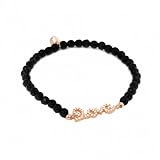 Rose Gold Plated Love Message With Black Onyx Beads Stretch Bracelet