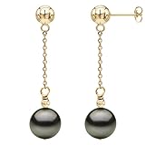 14k Yellow Gold 9-9.5mm Black Round Tahitian Cultured Pearl Tin-cup Wire Stud Dangle Earrings. Expires Jan 12, 2015