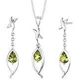 Peridot Tear Drop Pendant Earrings Necklace Sterling Silver